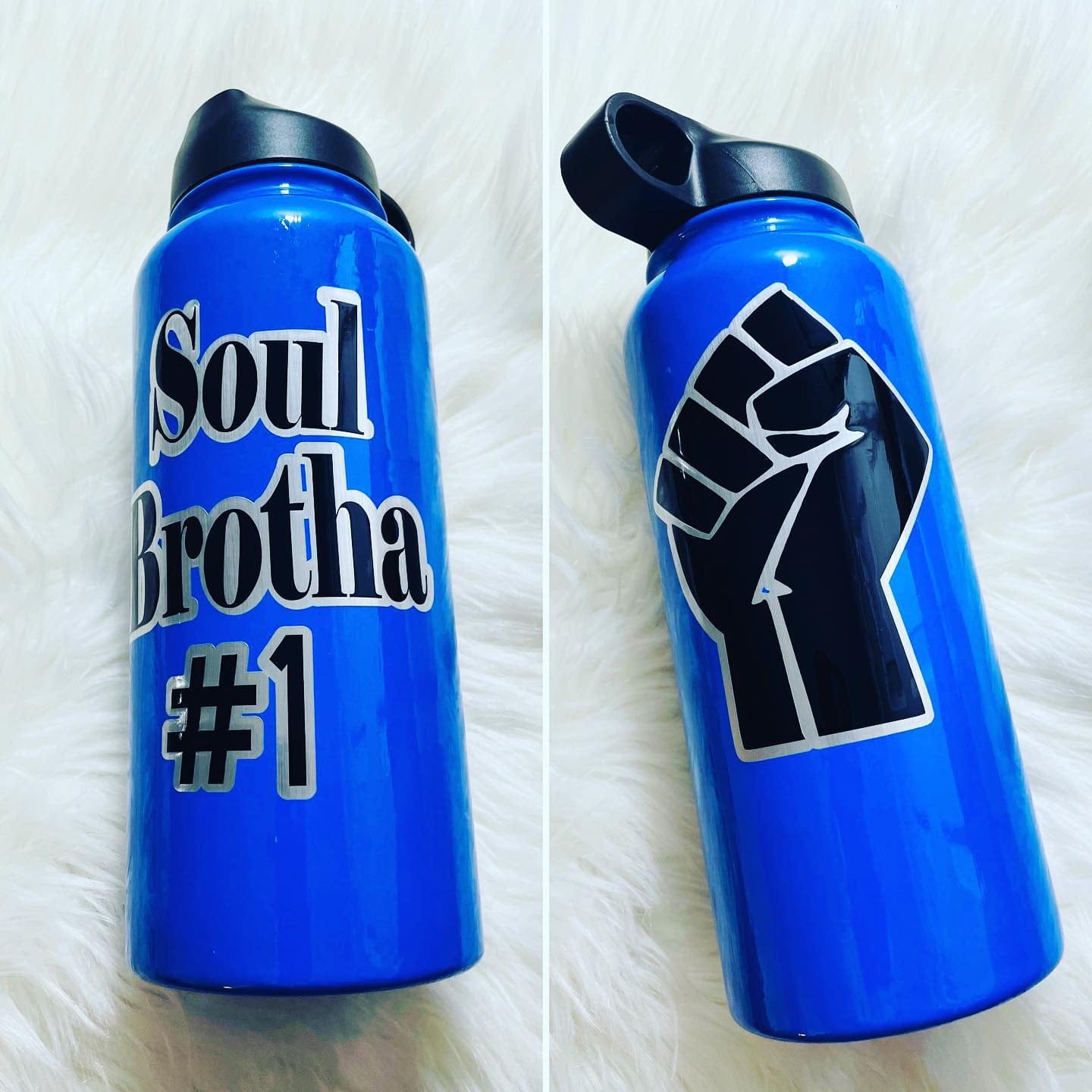 Custom 32 oz water bottle, composed of double-wall vacuum stainless steel insulation to ensure heat and cold retention. The exterior is finished with a food-safe sealant for a smooth, glass-like appearance, while slight imperfections in the clear sealant may be visible. Every bottle is unique, giving your custom tumblers a one-of-a-kind look.