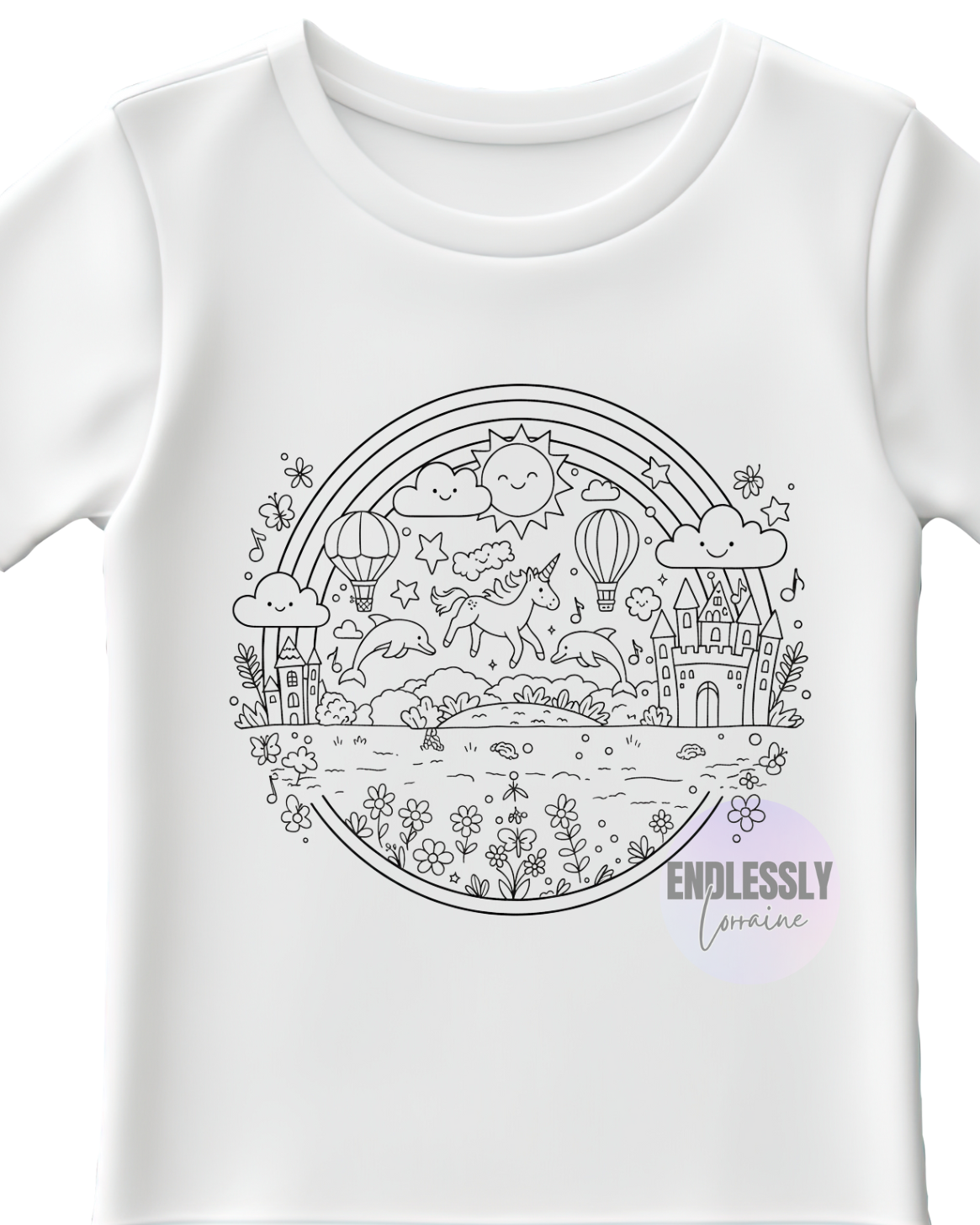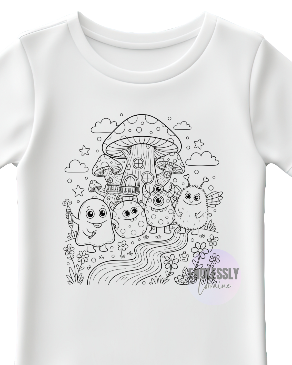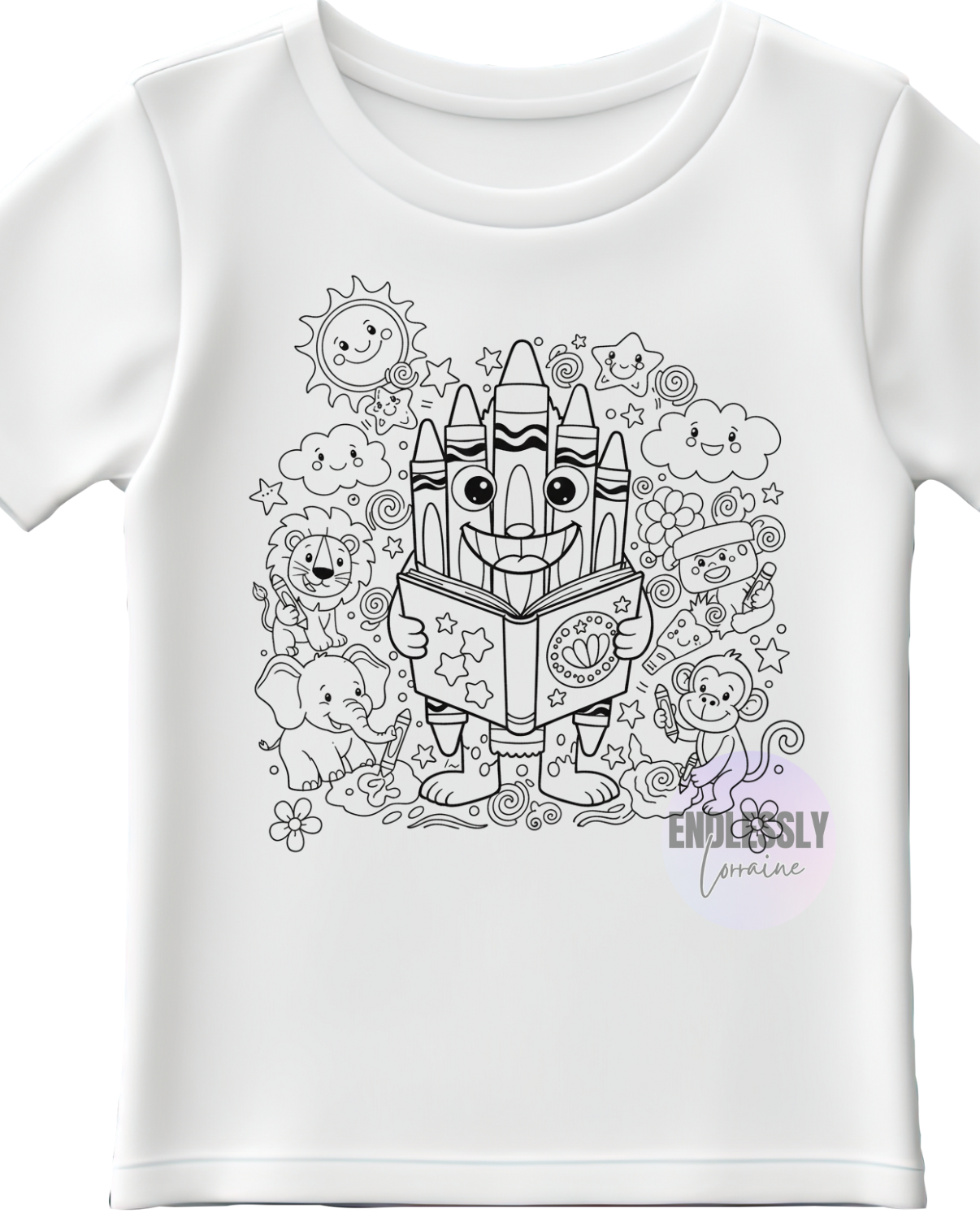 Each shirt features a high-quality black outline design that's ready to be filled with color. Whether it's for playtime, parties, school activities, or gifts, this shirts turns creativity into a wearable masterpiece that can be colored over and over!