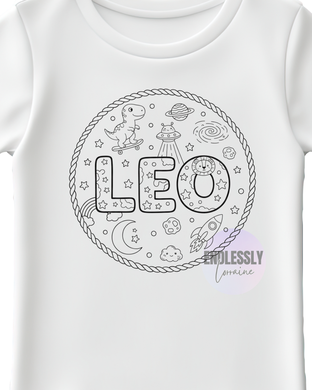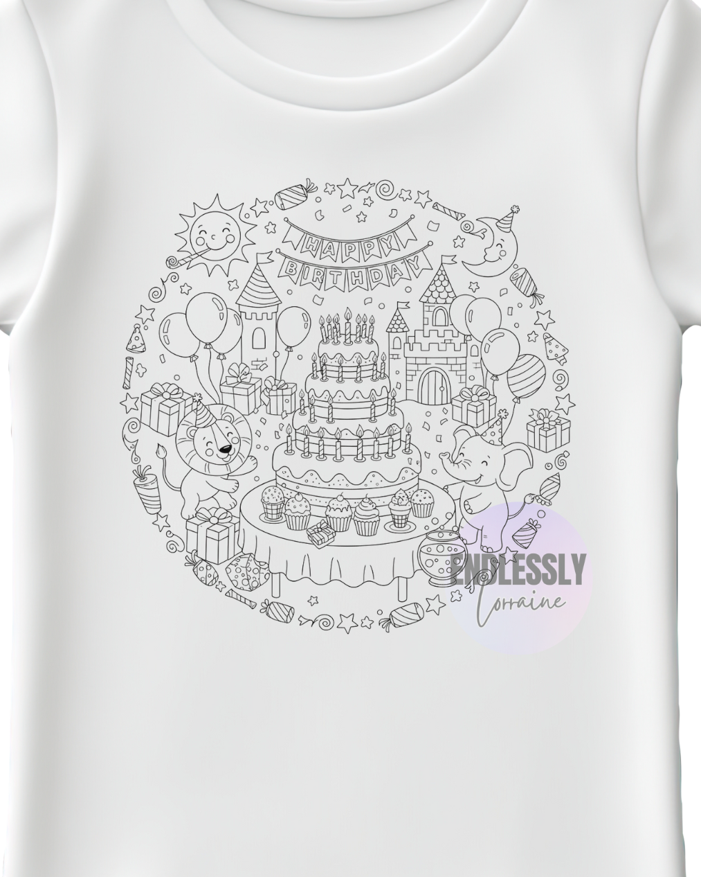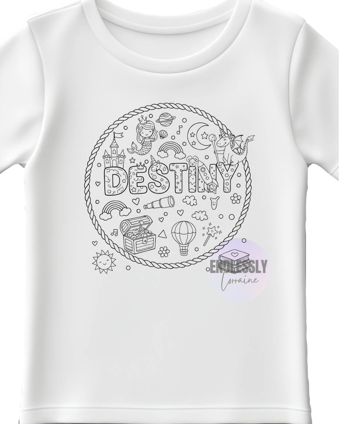 Each shirt features a high-quality black outline design that's ready to be filled with color. Whether it's for playtime, parties, school activities, or gifts, this shirts turns creativity into a wearable masterpiece that can be colored over and over!